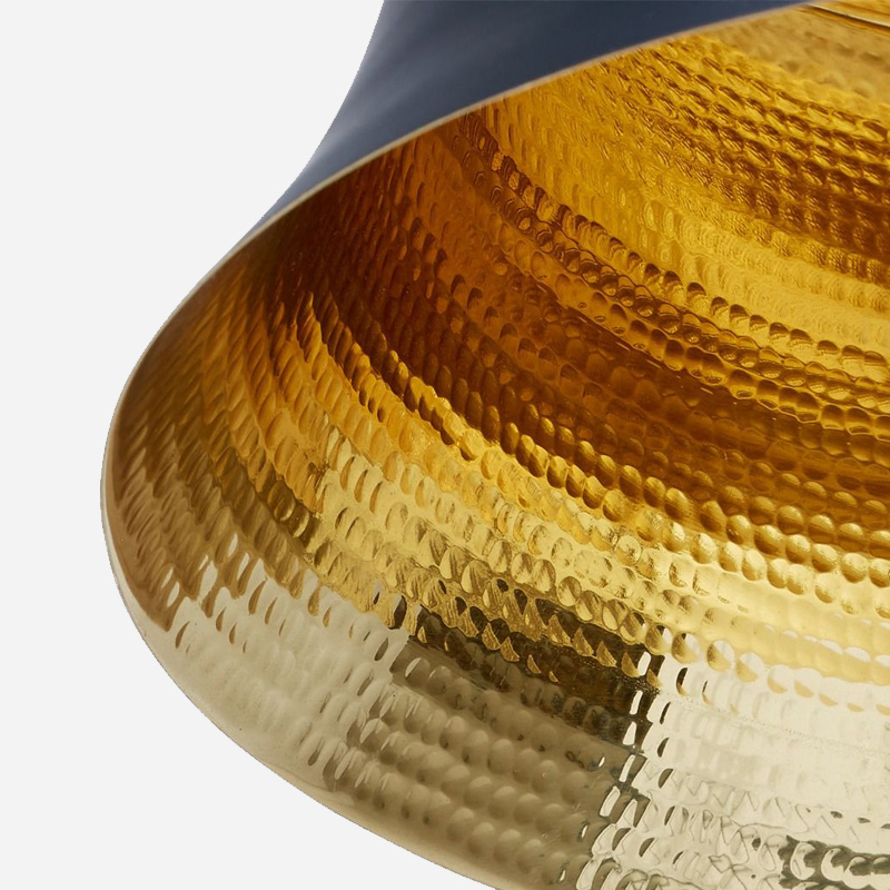 Beat Waist Suspension Noir est faite de laiton noir à l'extérieur qui crée leur caractère unique par l'intermédiaire des techniques spécifiques de pression et de martelage. L'intérieur de couleur laiton confère au luminaire un aspect luxueux et rend la lumière particulièrement chaude.