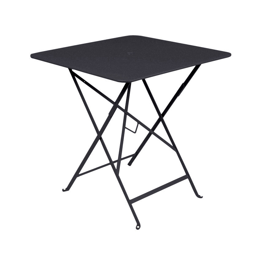 Table Bistro Pliante pour 3 à 4 personnes est une table de jardin signé Design Studio Femob, conçue d’une structure en acier laqué et d’un plateau en tôle acier avec trou central pour parasol (Ø4.1cm)