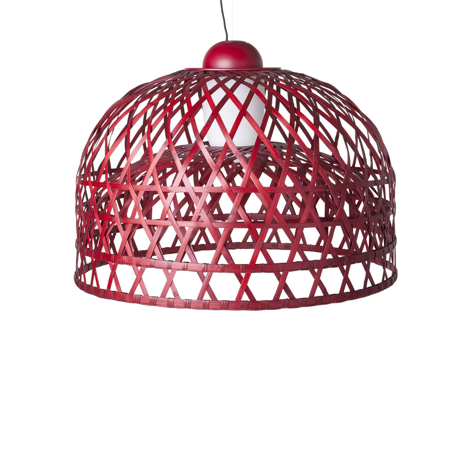 Emperor Suspension se décline en 3 tailles différents : petite pour un diamètre de 60 cm, moyen pour un diamètre de 100 cm et grande pour un diamètre de 160 cm et disponible en 2 coloris : rouge et noir.