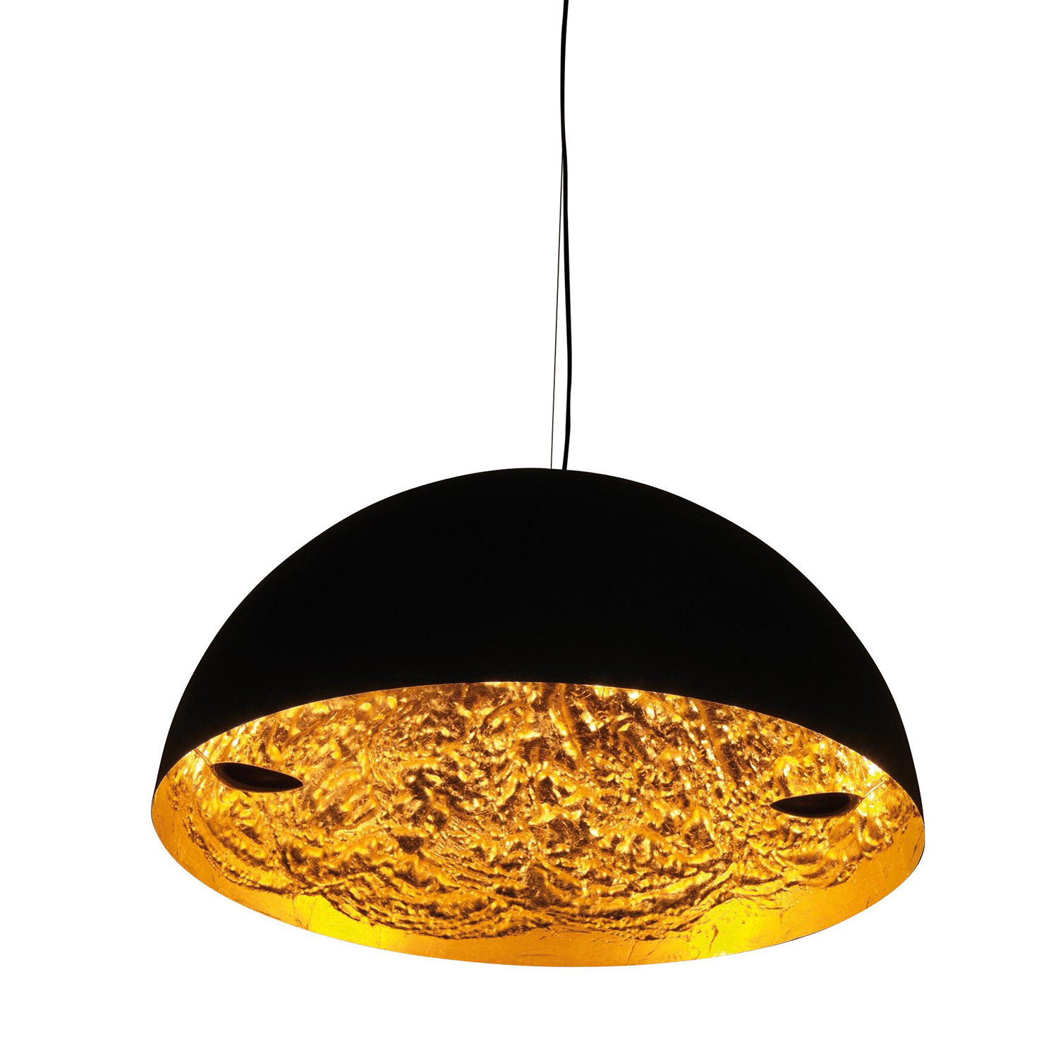 SUSPENSION STCHU-MOON 2 LED NOIR ET OR 80CM forme partie de la collection Stchu-Moon imaginée et réalisée par Enzo Catellani pour la marque Catellani and Smith.