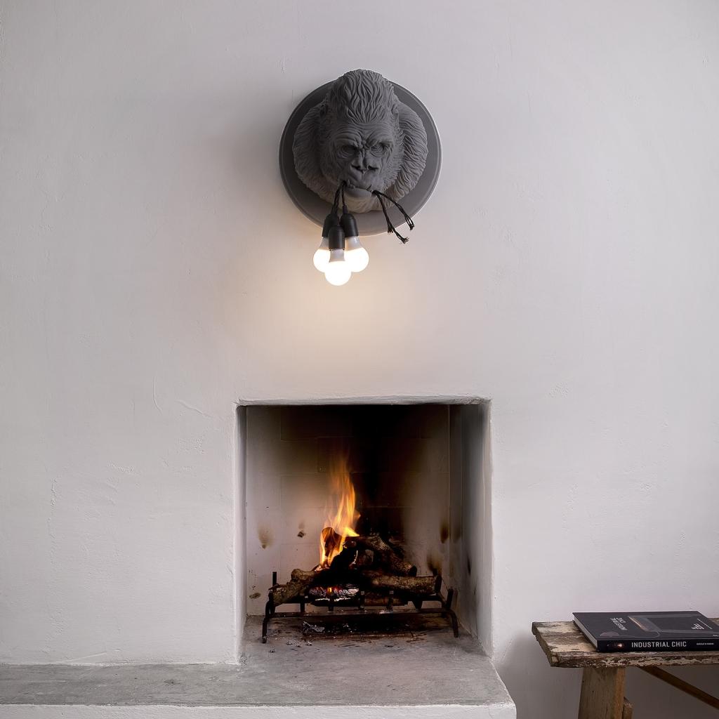 Cette applique au visage de Gorille en colère est fabriqué en céramique et déclinée en coloris blanc et gris. Il mesure 41,5 cm de diamètre et 24 cm de profondeur.